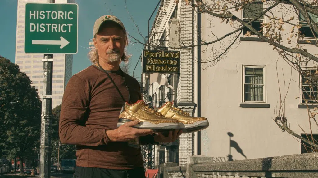Yeah, it has been a really incredible experience to be a part of and just has unfolded into such an amazing story that we could have never even imagined would’ve happened at Portland Rescue Mission. About halfway through last year, we had a person who is a part of our programs at our Burnside Shelter. He’s someone who has experienced homelessness and has been getting off the street and getting his life together. He, as part of giving back sorts through donations that come down this big donation shoot we have in our main lobby. So, people come and they bring clothing and coats and shoes, and they drop them down that chute, they get sorted in a basket down below. He was going through these baskets, and in the bottom of one of the baskets, he found this pair of gold, Nike Air Jordans. He thought they looked kind of special.