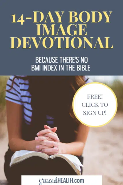 There is no BMI chart in the Bible. Why are we trying to fit into a mold in which we were not created? Appreciate your body AND take care of it. Sign up for this 14 day devotional by Graced Health to take a biblical approach to being healthy.