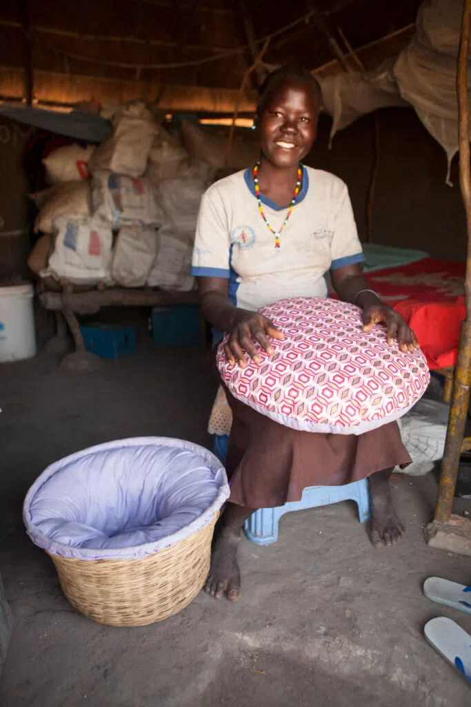 She started a small business making insulated containers to keep food hot or cold. And she has taught other women to do the same. Entrepreneurs like Angelina are empowered to grow their businesses and increase their income by joining a savings group.