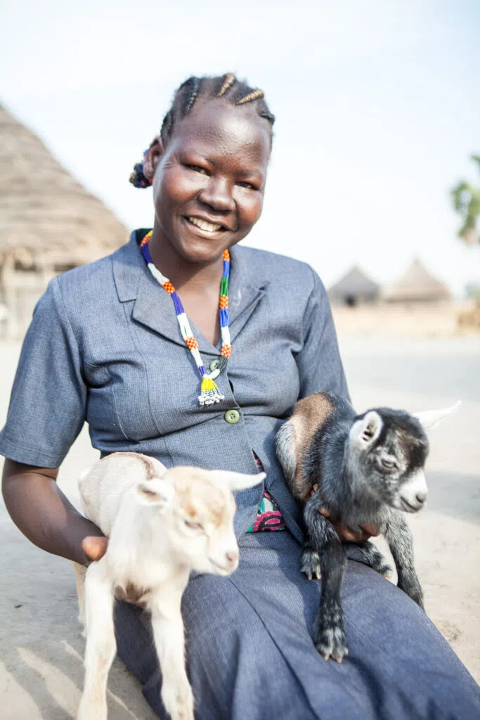 Things really began to improve in Angelina’s life when her family received goats and chickens through World Concern’s Global Gift Guide. In South Sudan, livestock are like having an instant bank account. Not only did Angelina’s family now have milk and eggs to eat and sell for income, seeds and agricultural training, helped them grow vegetables for a stable, nutritious diet.