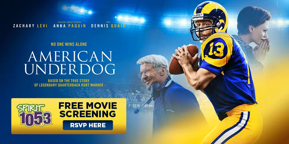 Join Erica and the SPIRIT 105.3 team for a FREE movie screening of American Underdog! Wear your favorite ugly Christmas sweater and be festive!